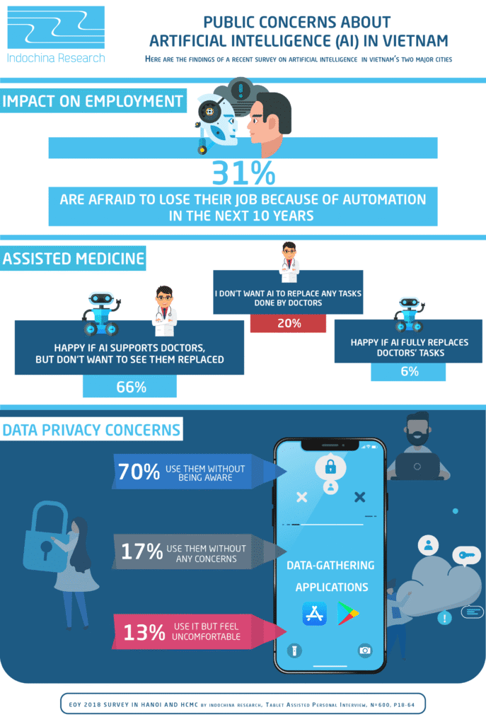 Here’s a snapshot of Vietnamese people’s opinion on Artificial Intelligence (AI) and concerns with AI replacing jobs, specially in the medical sector. We also gauged people’s awareness of data gathering applications and the infograph shows what we found. The question of AI in medicine was part of a global survey including 40 countries by members of the WIN Network of research and polling agencies. To see how Vietnam compares to the other country, access the online WIN dashboard at: https://bit.ly/2M941Tw