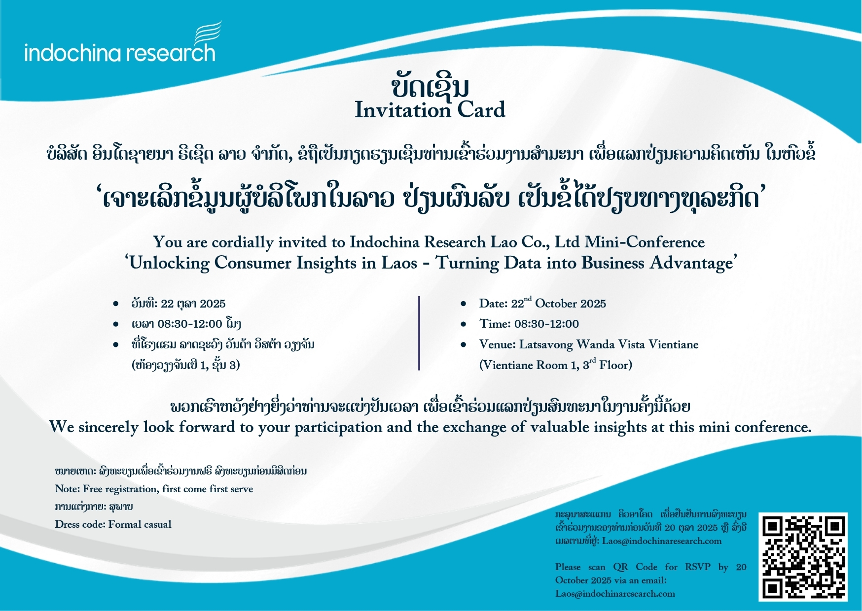 Are you a business owner, entrepreneur, or organization manager? Ever wondered what Lao consumers really think about the economy, finance, and spending behavior? Indochina Research Lao invites you to join our exclusive event on the Lao Consumer Confidence Index — where we’ll reveal key insights from our latest nationwide survey.