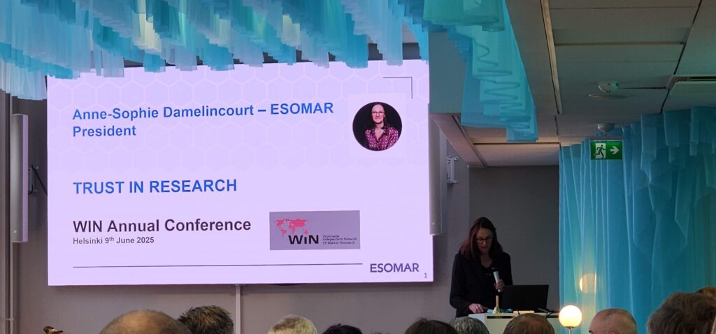 Tuần trước, tại Hội nghị Toàn cầu WIN | Worldwide Independent Network of MR & OP diễn ra ở Helsinki, chúng tôi rất vinh dự được đón tiếp Anne-Sophie Damelincourt, Chủ tịch ESOMAR. Bà đã có một bài chia sẻ đầy cảm hứng về sự phát triển của ngành nghiên cứu và Bộ Quy tắc Ứng xử ESOMAR sắp ra mắt.