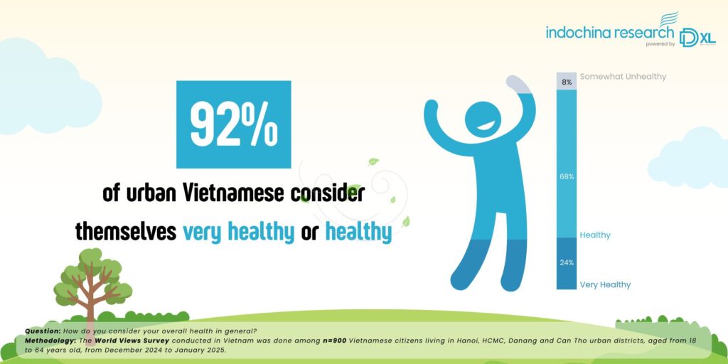 92% người dân thành thị cho rằng sức khỏe của bản thân từ “tốt” cho tới “rất tốt”. Công thức cho kết quả tích cực này đến từ: